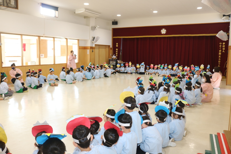 園長先生から節分のお話を聞きます