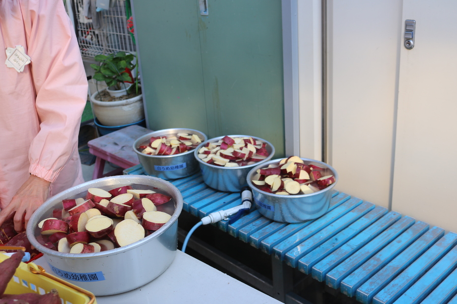 お芋を切って準備します