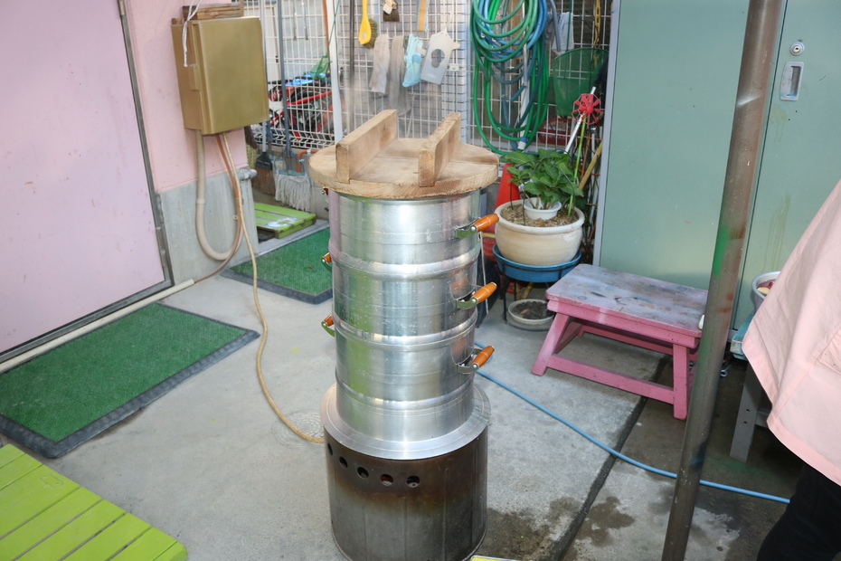 セイロに入れて蒸かしていきます。