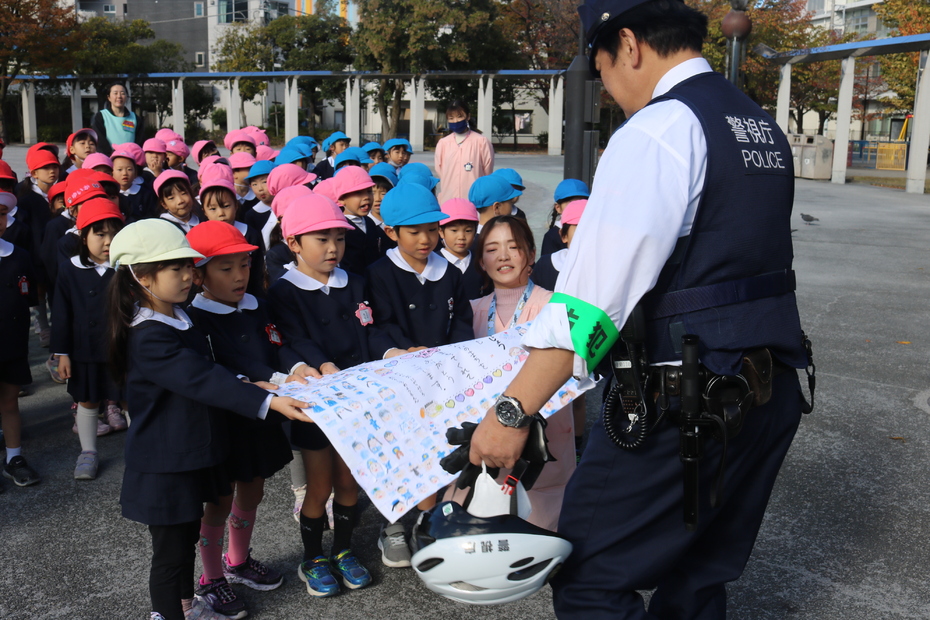20日に年長のお友達が交番に感謝状を私に行きました。
