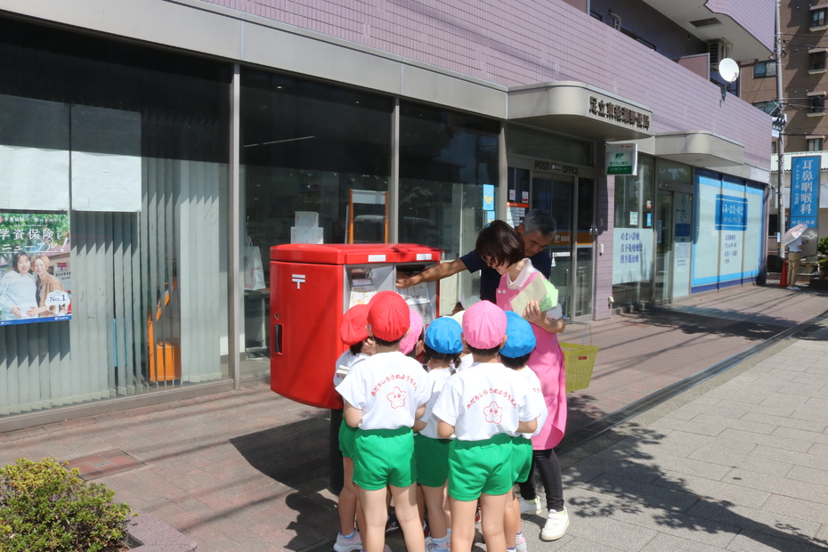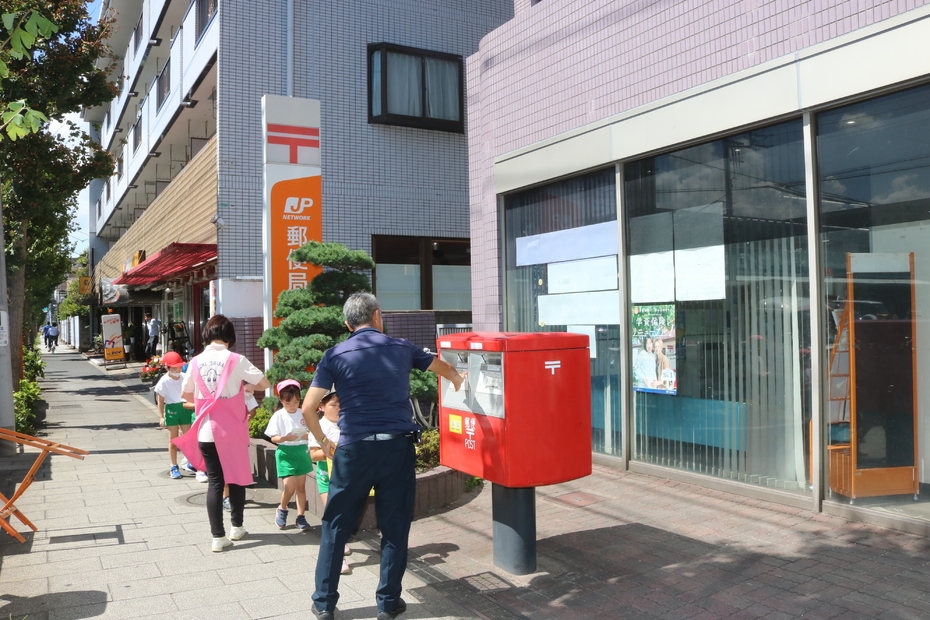 9月14日年長代表がはがきを投函しに郵便局に行きました。