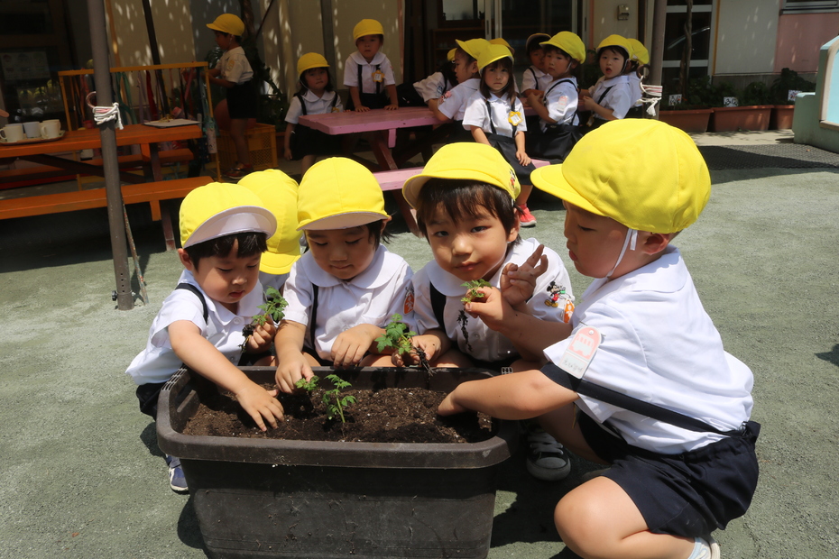 先生の説明を聞いて植えます。