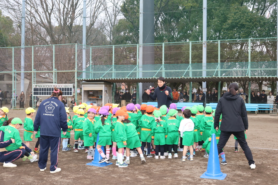 野球場でマラソン大会