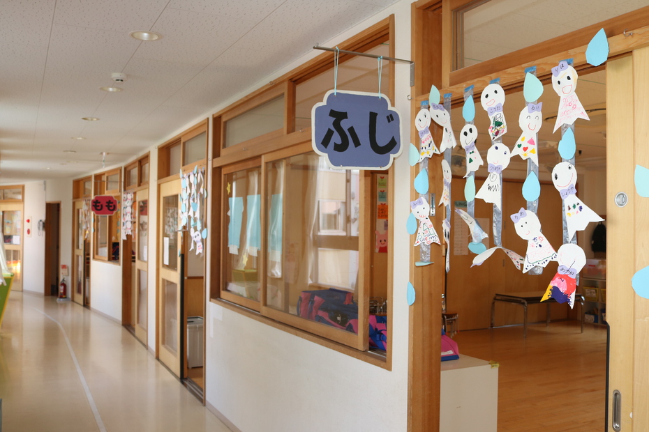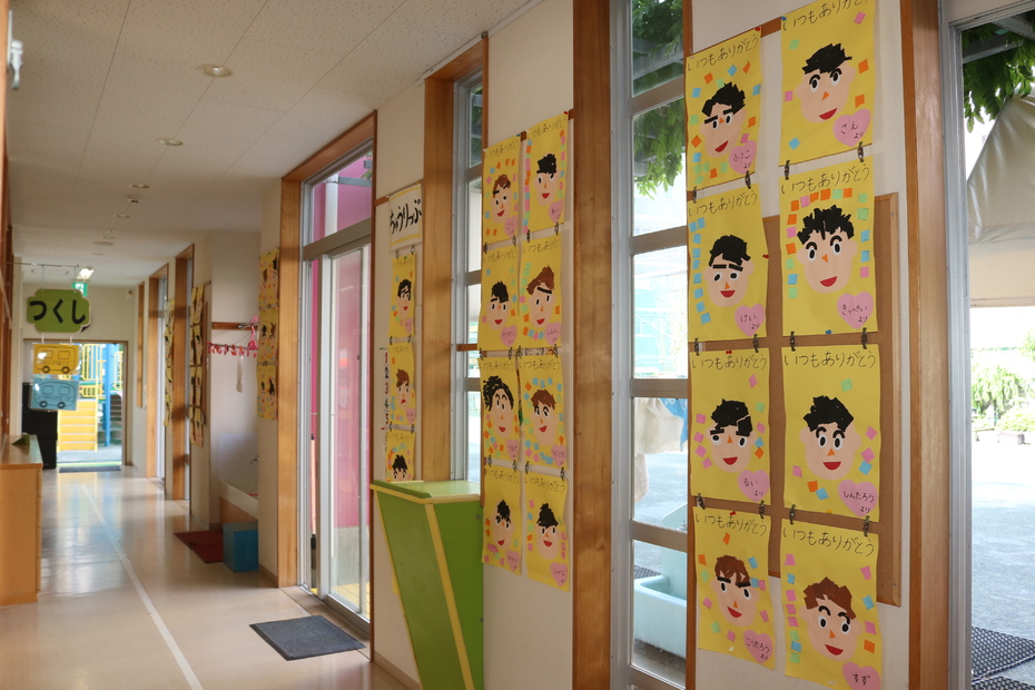 廊下ではお友達の作品がお出迎え!