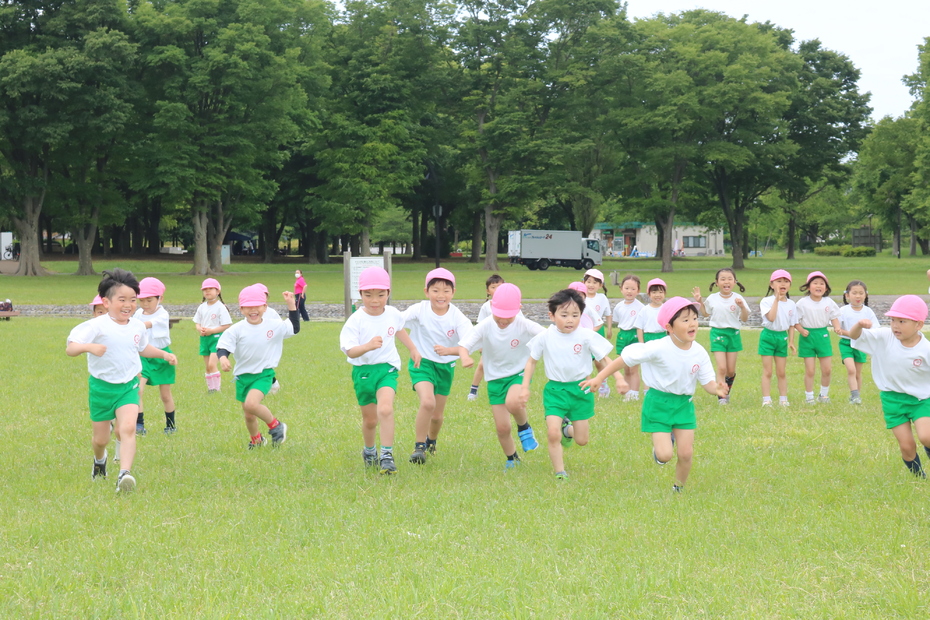 広場でかけっこ。