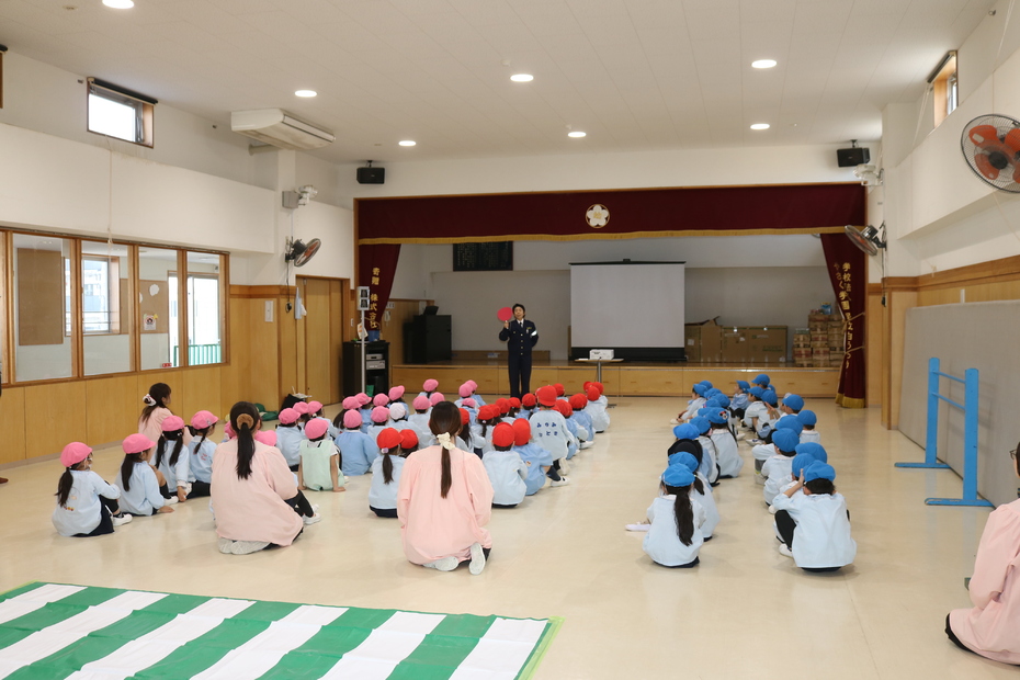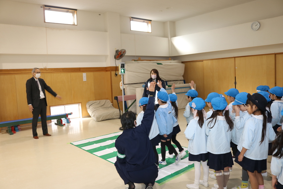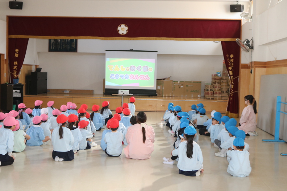 年長さんが、警察官と区役所の方から交通安全指導を受けました