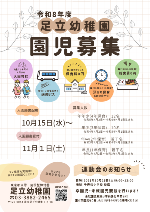 園見学もできますので、お気軽にお電話ください。
