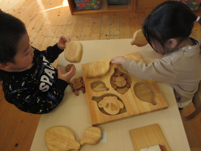 お遊戯会が終わって子どもたち、表情が変わりました 大きな舞台を経験して自信がついたのかもしれません 友だちといっしょに、大きなことをやり遂げる どの年齢も子どもにとっては大きな経験 日常生活や人との関りが変わってきました。 年長(ぱんだぐみ)に対しての憧れや、お手本、目標・・・ 小さいクラスへのぱんださんの対応もまた一つ変わってきました。 成長を大きく感じますね | ||