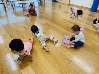 広告遊びでは、 ちぎったり 丸めたり 寝っ転がったり… それぞれの遊び方で 楽しんでいます♪ | ||