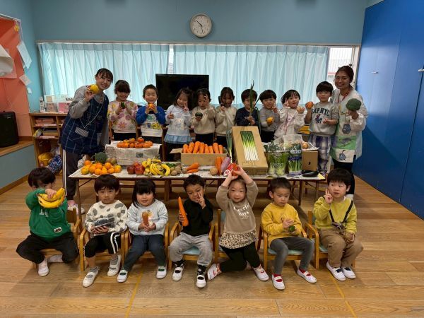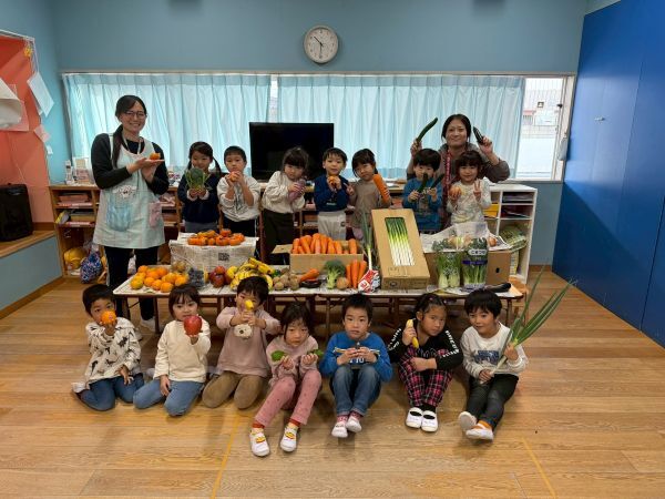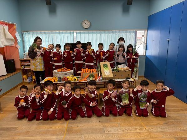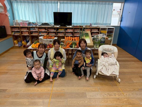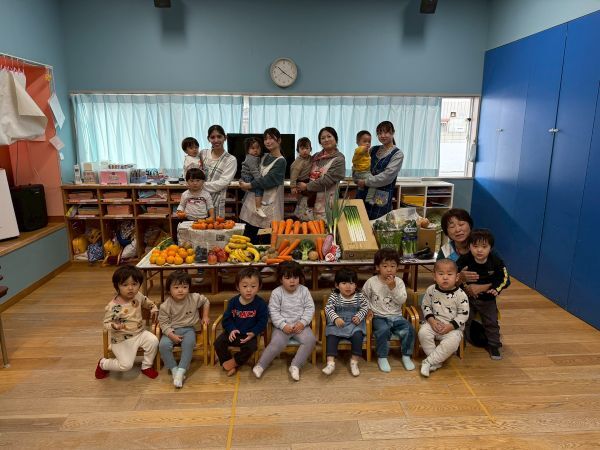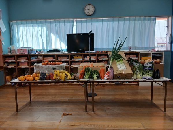 沢山の野菜や果物をささげて収穫感謝礼拝を行いました。