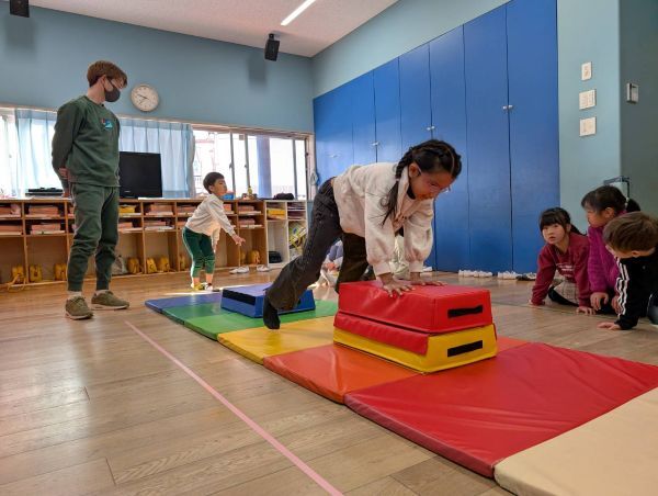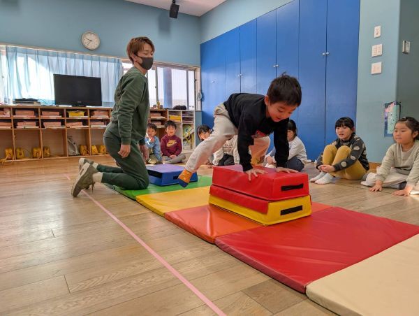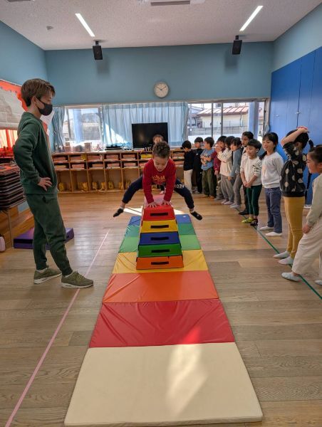 今日は祐大先生が来て、跳び箱の指導をしてくださいました。