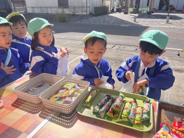 お寿司屋さんでは美恵子先生が駄菓子屋さんを開いて待っていてくれました。