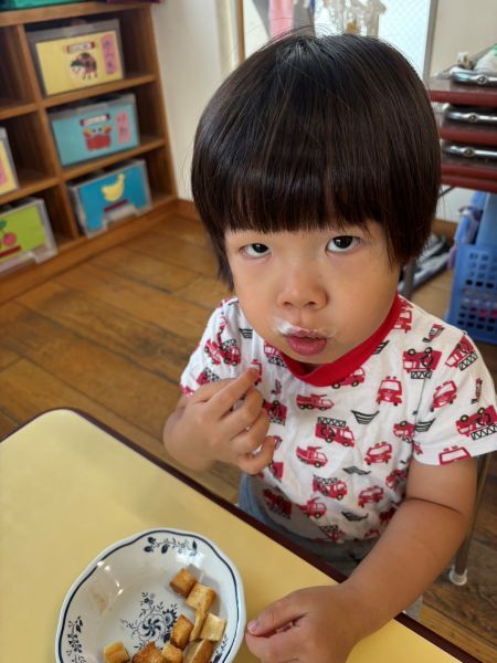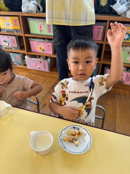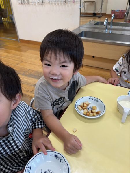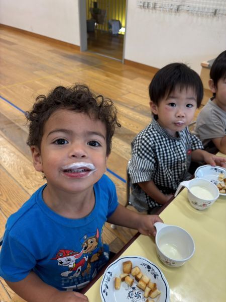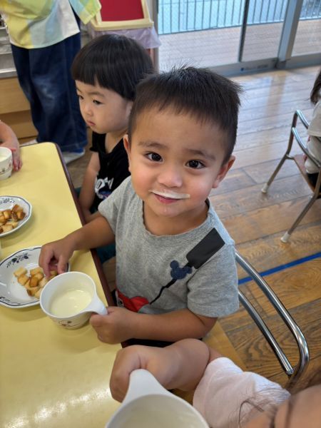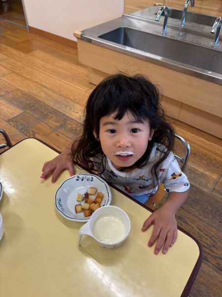 飲むヨーグルトは口ひげを作って嬉しそう(^▽^)/