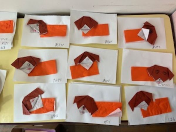 集中して折り、可愛い犬が完成しました。