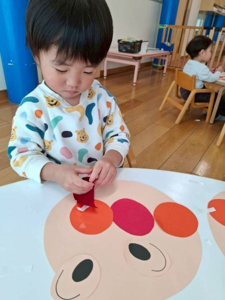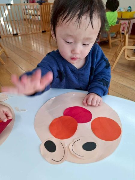 鼻は?口は?とほっぺは?などと声掛けしながら作りました。