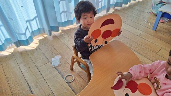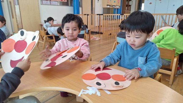 今日はみんなが大好きなアンパンマンの福笑いをしました。