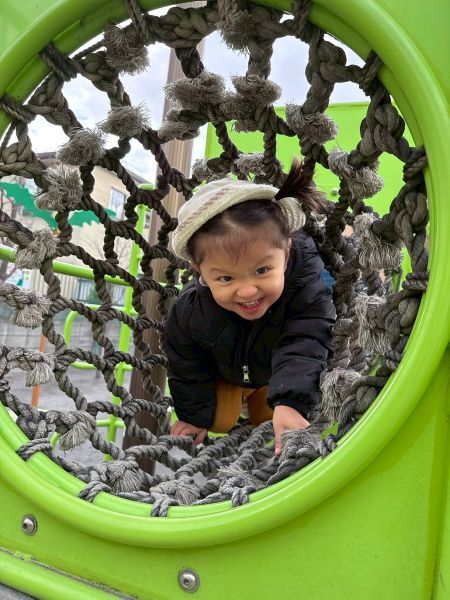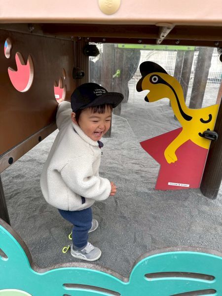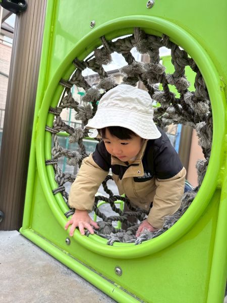 アスレチックにほとんどの子がチャレンジし笑顔一杯で滑り台やトンネルくぐりなどしています。
