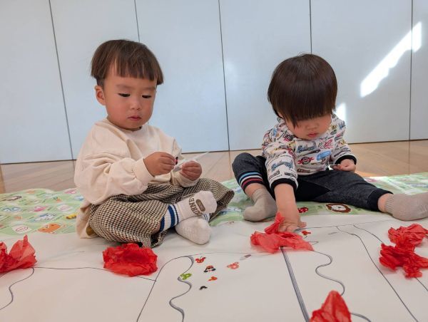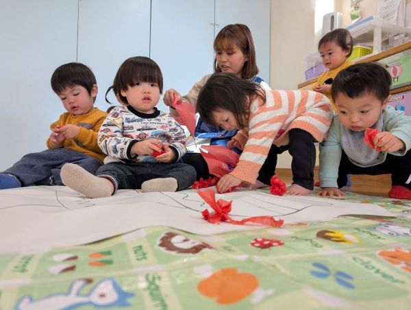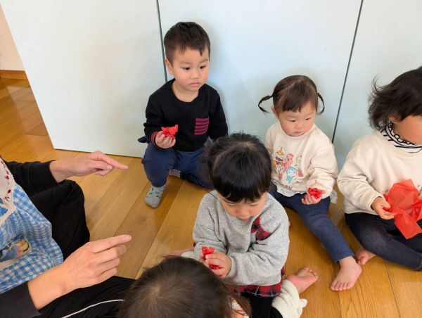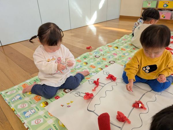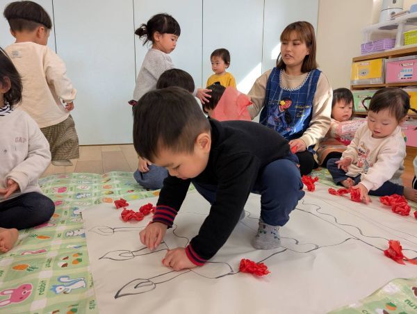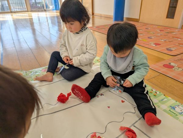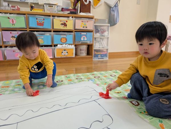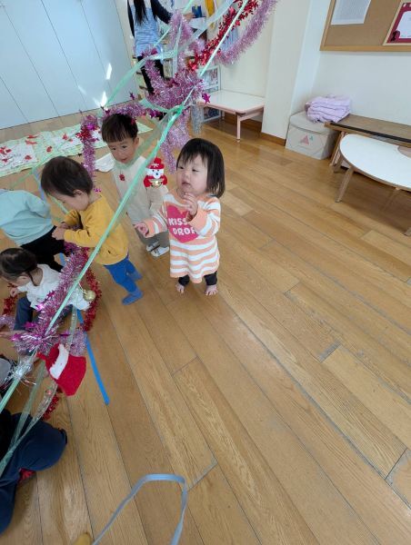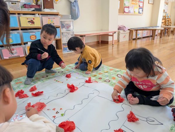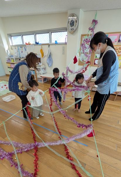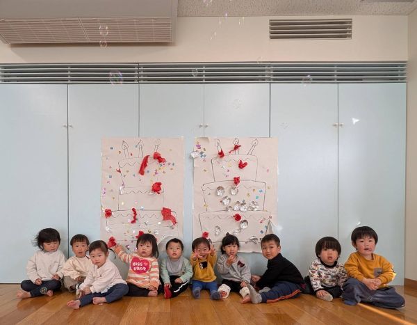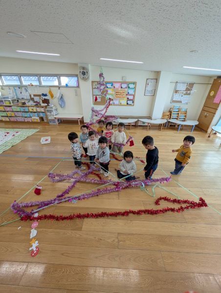 クリスマス制作でみんなで大きなケーキを作りました!!