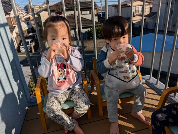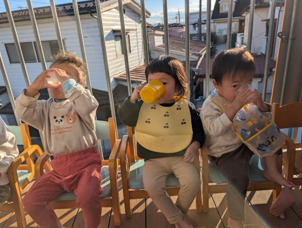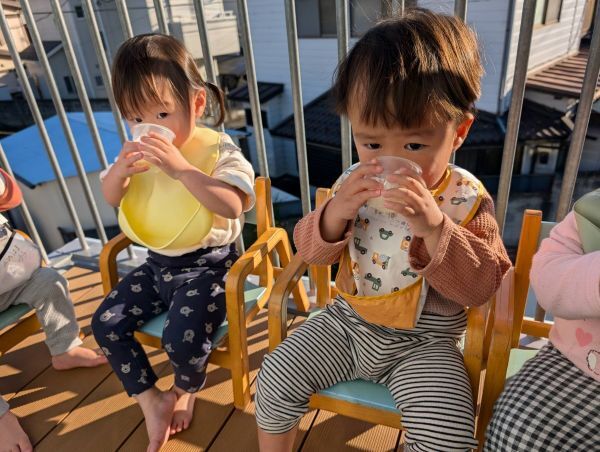 おやつは暖かい日にはベランダで食べてピクニック気分を
