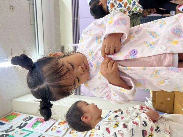 パジャマへの着替えの練習も行い