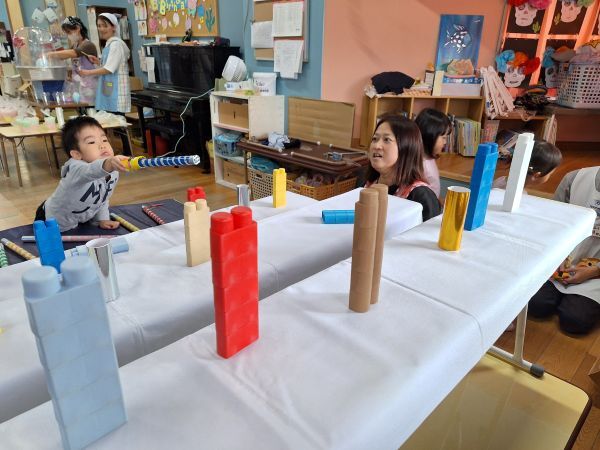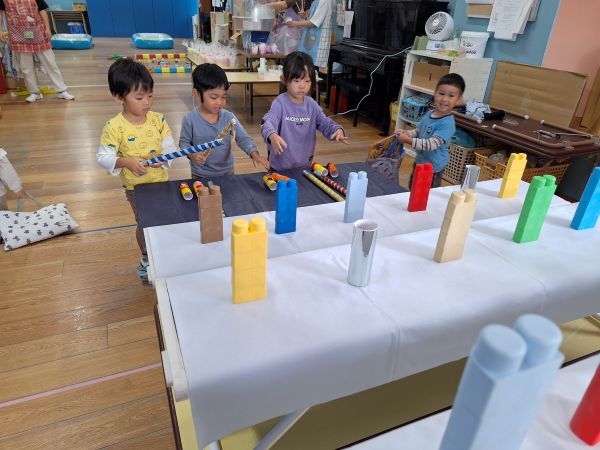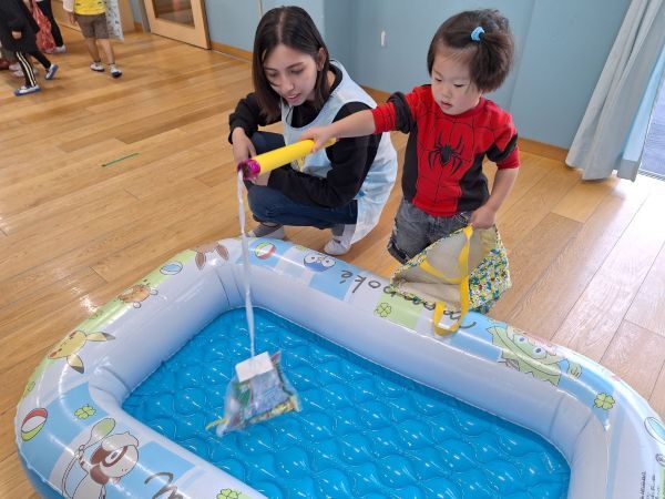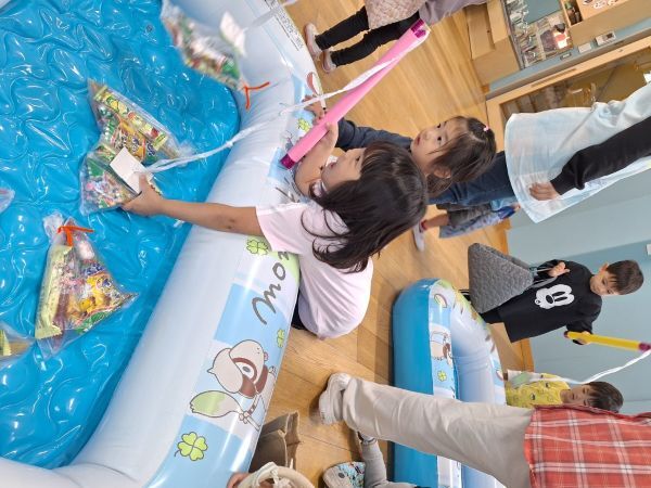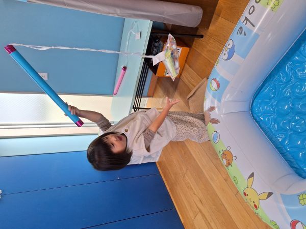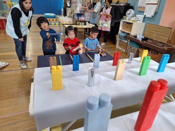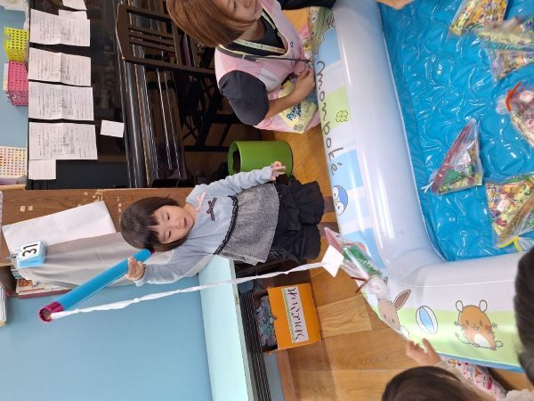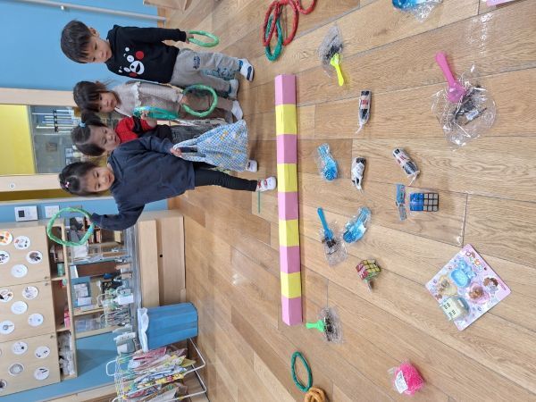 輪投げの練習をしたりと準備万端の子どもたち、