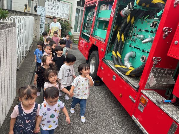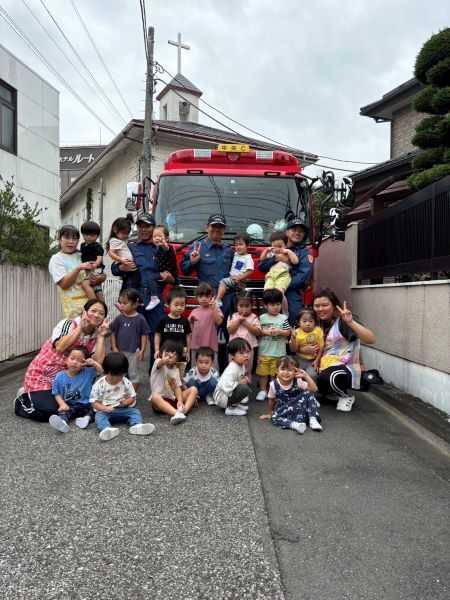 終了後は消防車を見学させてもらい、消防士さんとも触れ合いました。