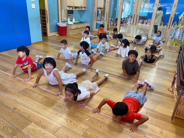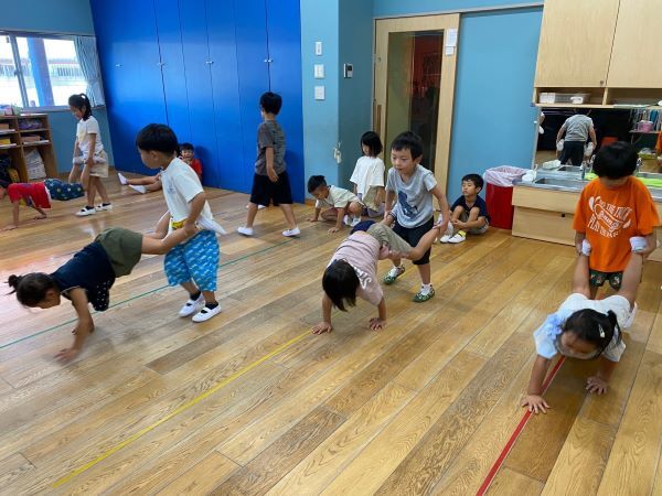 ひつじ組では、室内でも基礎体力作りを行っています。
