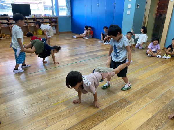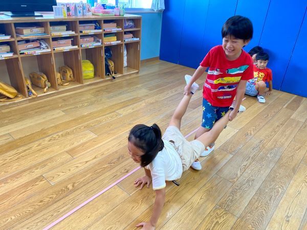 子供たちが協力しあってどのようにすれば上手にできるか考えながら取り組んでいます。