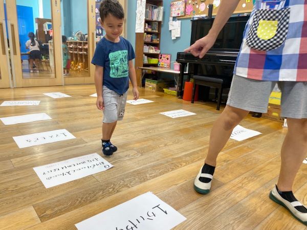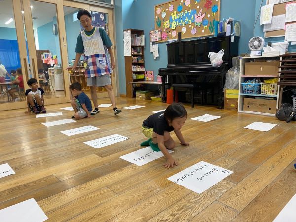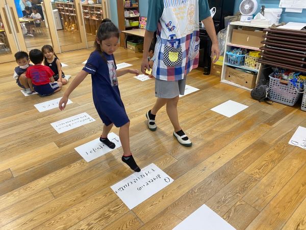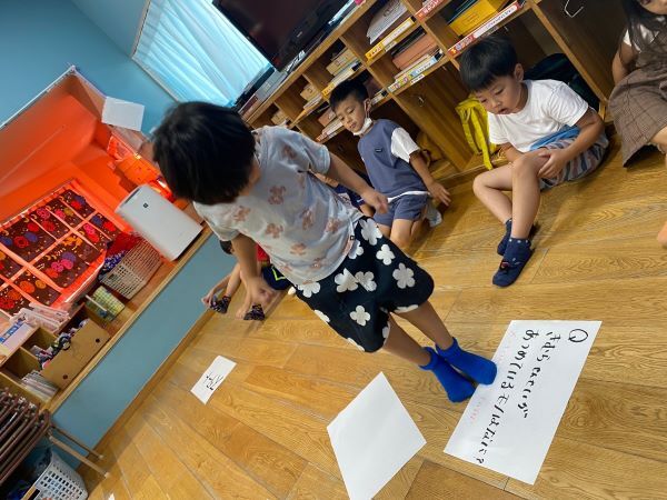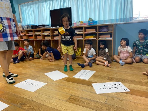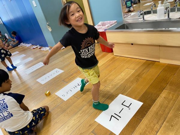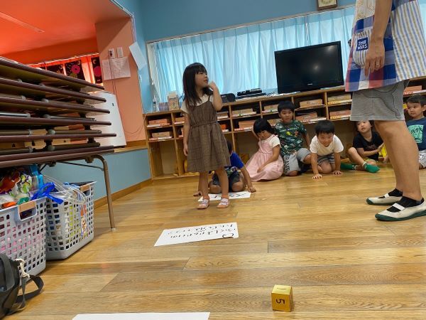 また、双六遊びも子供たち自身が駒になってマスを移動して遊びました。