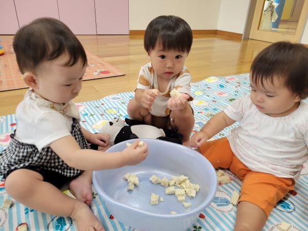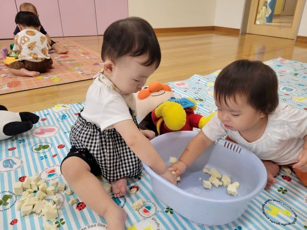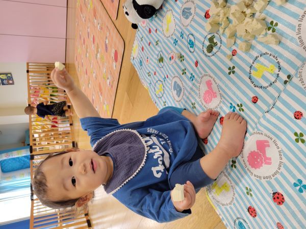 今日は高野豆腐を使って感触遊びを楽しみました。
