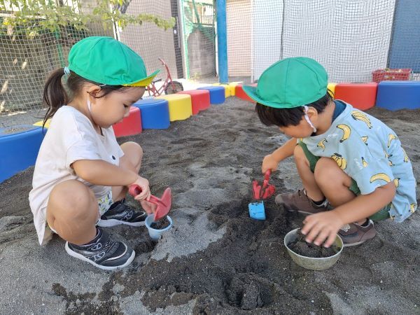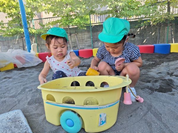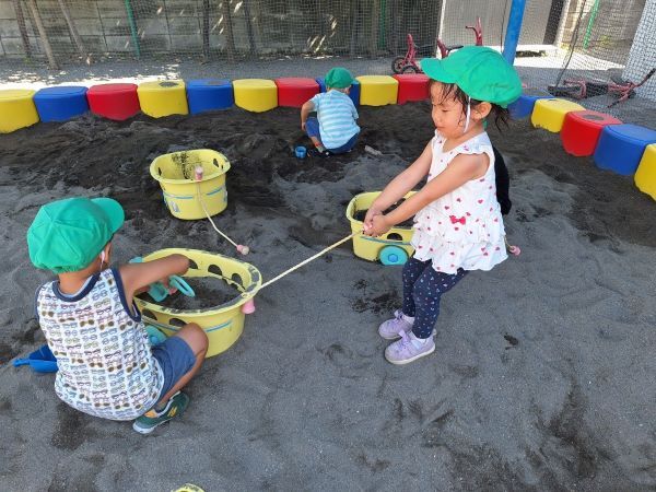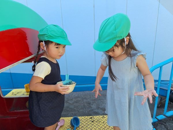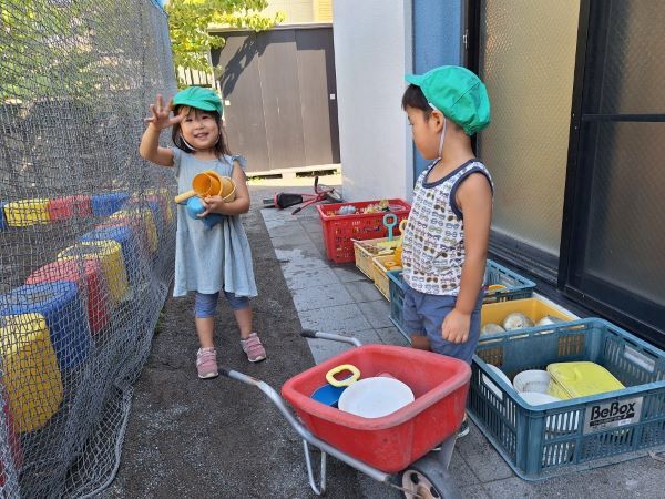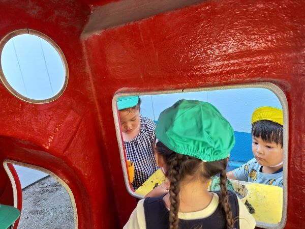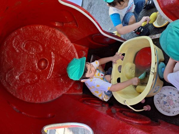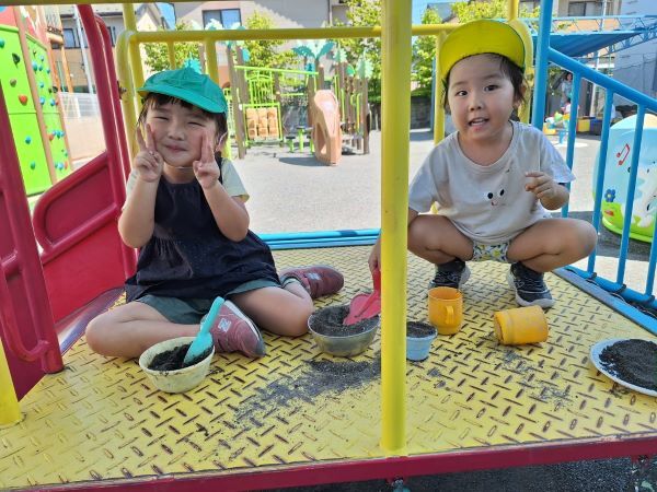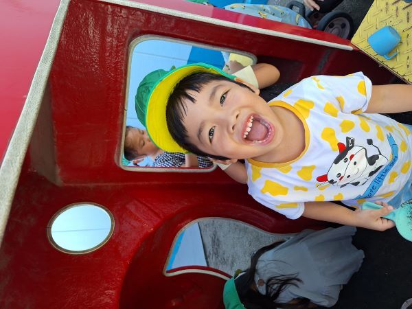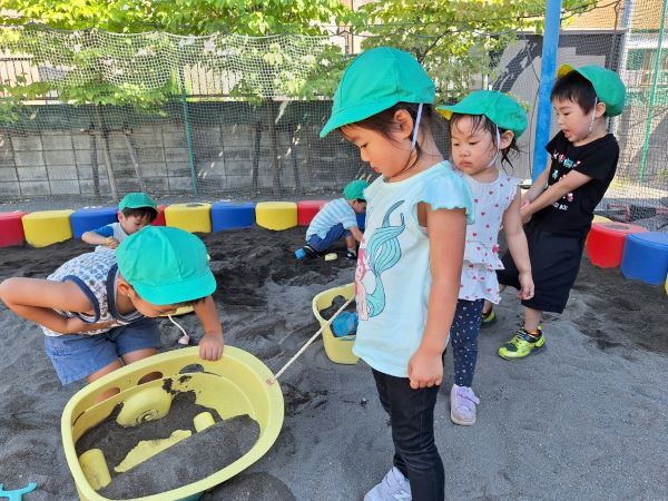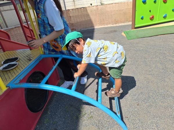 製作の後は外遊び!旭公園に行くぞと言いながら園庭へ…