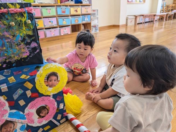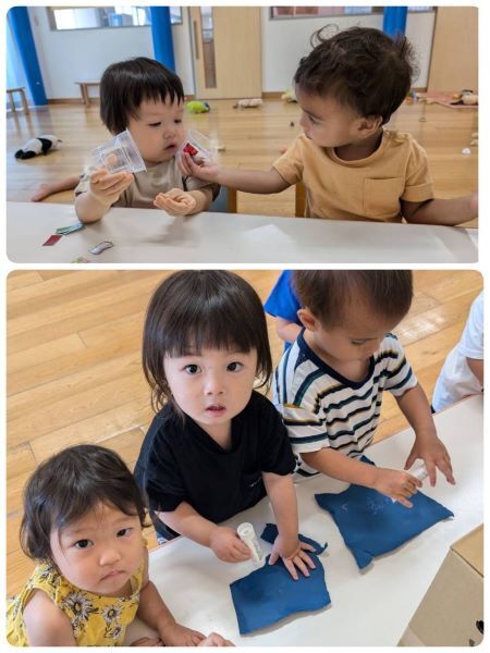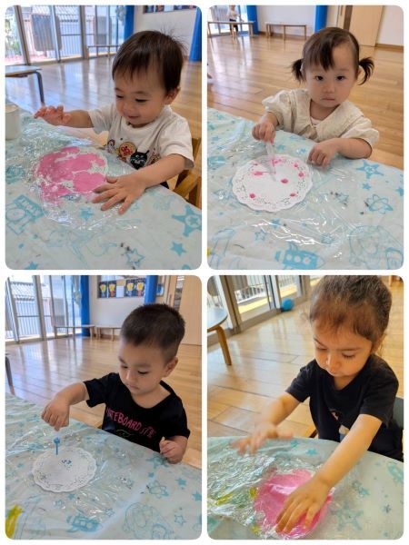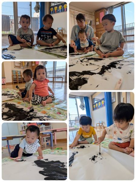 ひよこ組さんも子供たちが絵具を使って制作をし