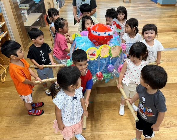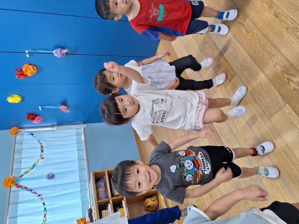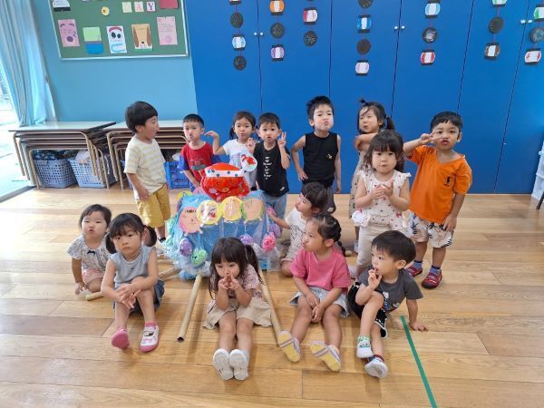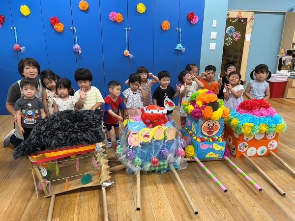 今年は、各クラスでそれぞれのテーマでおみこしを作って