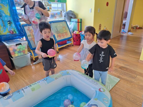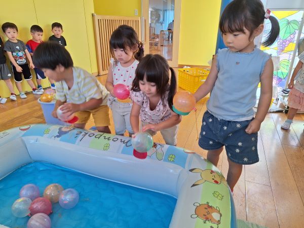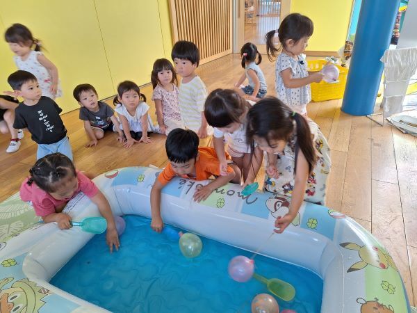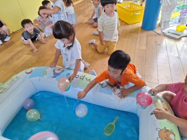 ヨーヨー釣りではどの色にしようか真剣に悩んで