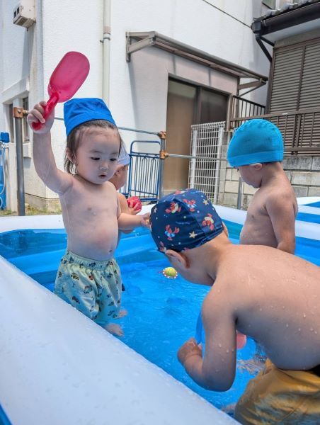 7月からはプールも始まり、まだ怖がってしまう子、大喜びの子と様々です。