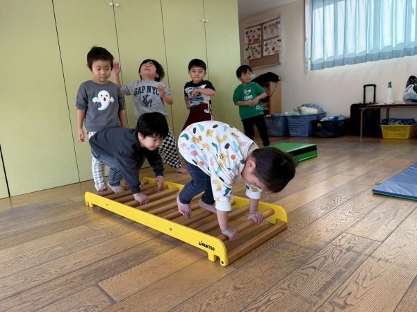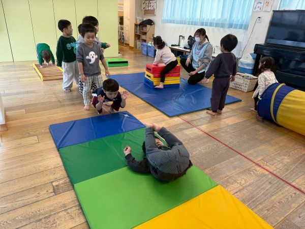 マットやトンネル、はしご等様々な動きを楽しみました。