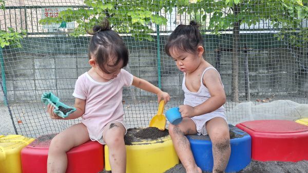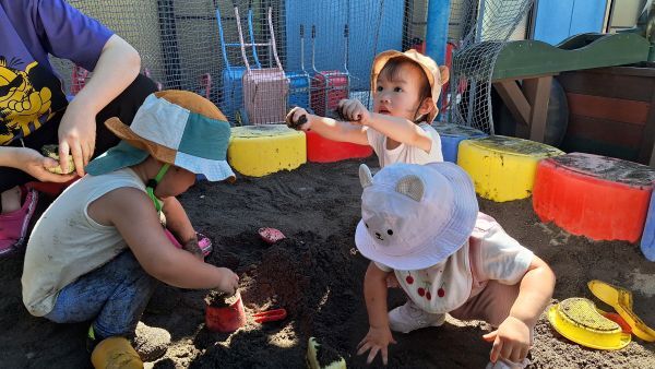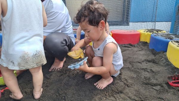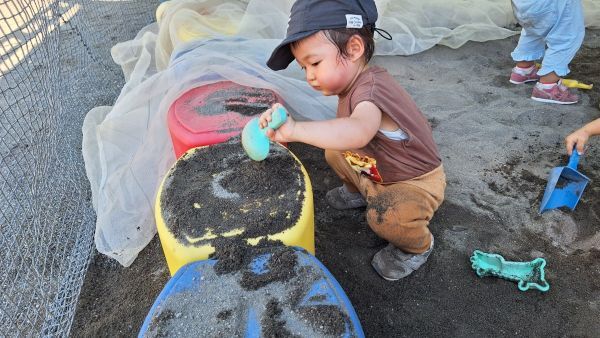 手に砂がつくのがいやがる子やダイナミックに遊ぶ子など様々でした。
