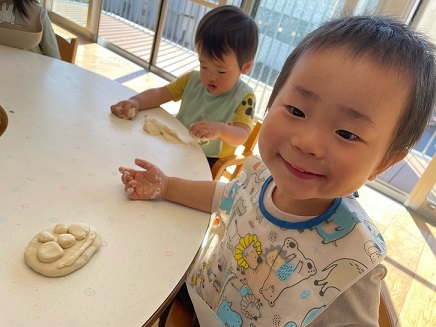 今日は初めての小麦粉粘土をしました。