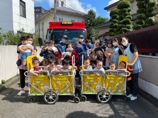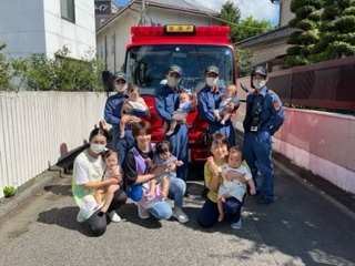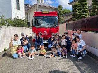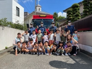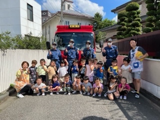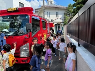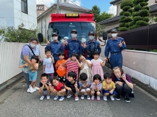 終わった後は消防車を見学させてもらい、大喜びの子ども達でした。