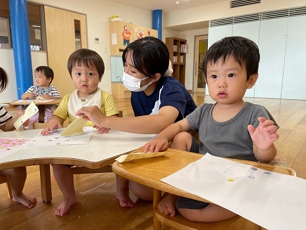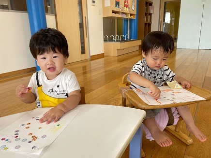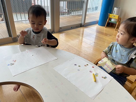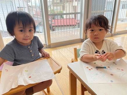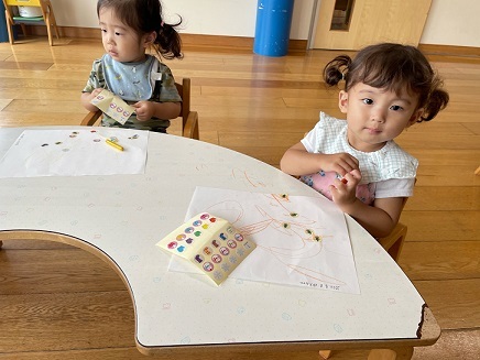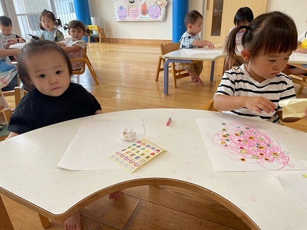 今日は、お絵描きやシール貼りをして楽しみました。