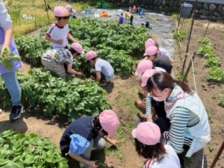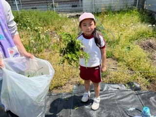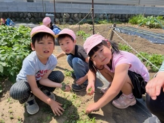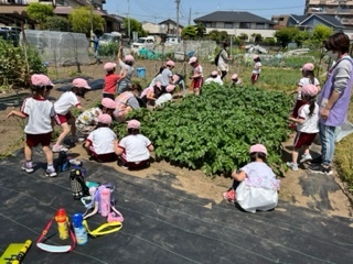 美味しいジャガイモができるように、子ども達とみんなで草むしりをしました。