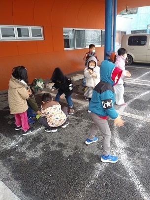 駐車場の屋根の下に少し雪を持ってきて遊びました。