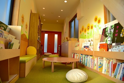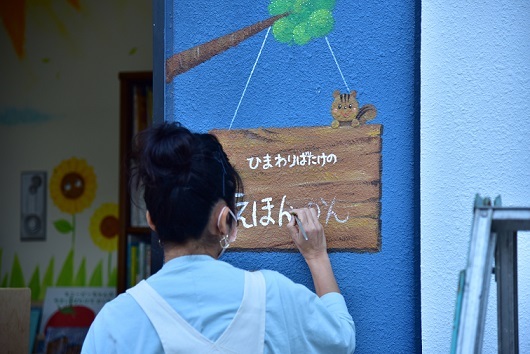 ワークショップの後、星野先生にえほん館の仕上をしていただきました。