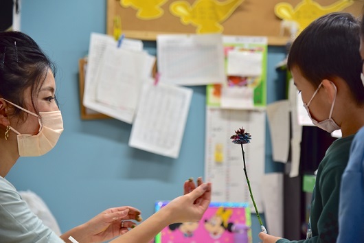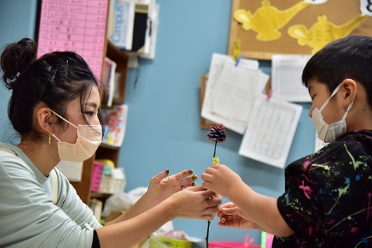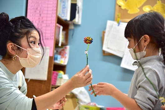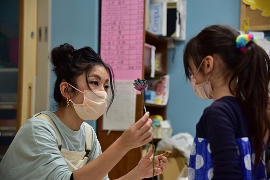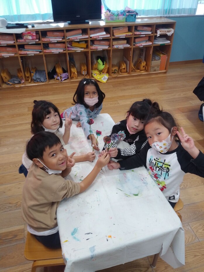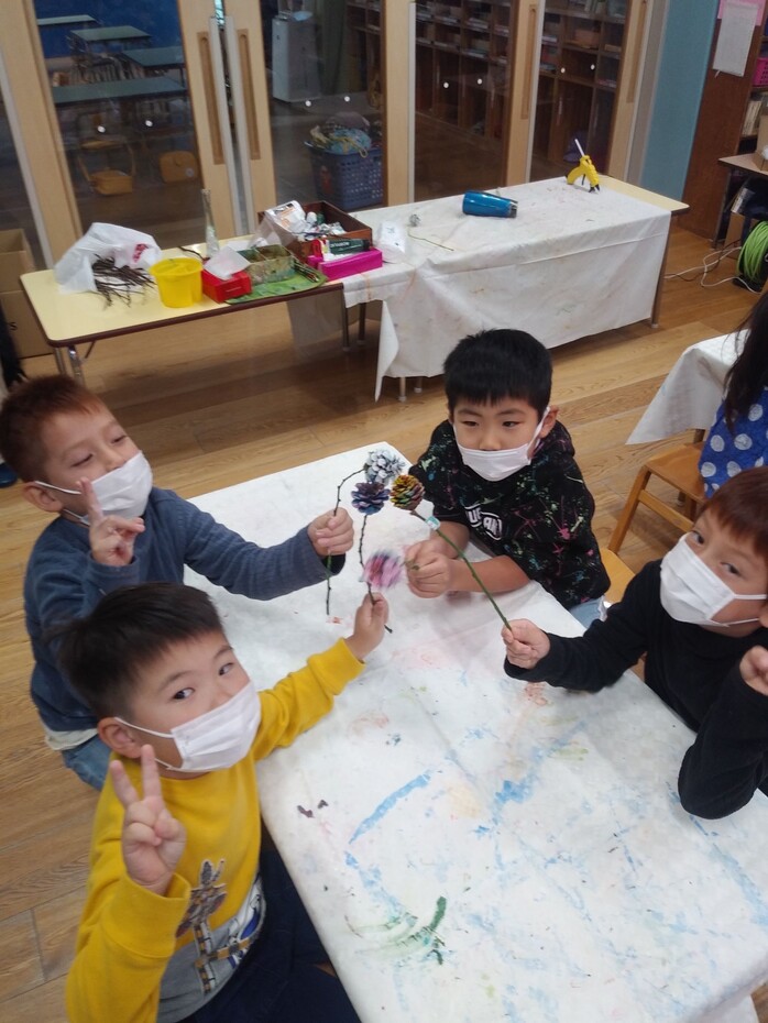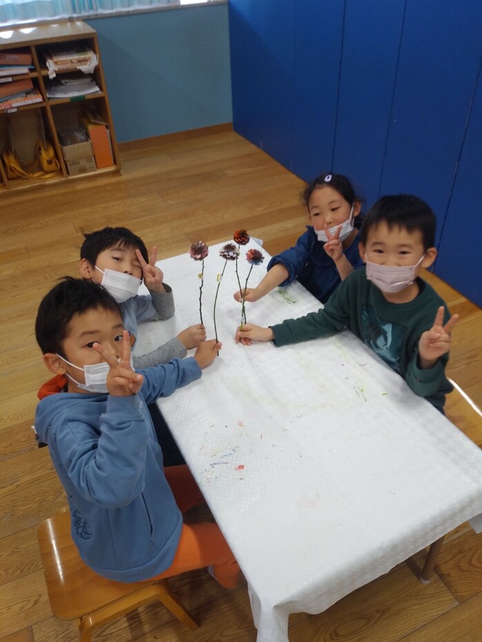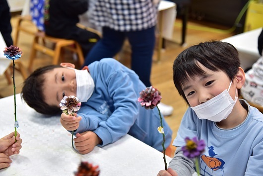 子ども達も真剣に取り組み、出来上がったお花に大喜びでした。