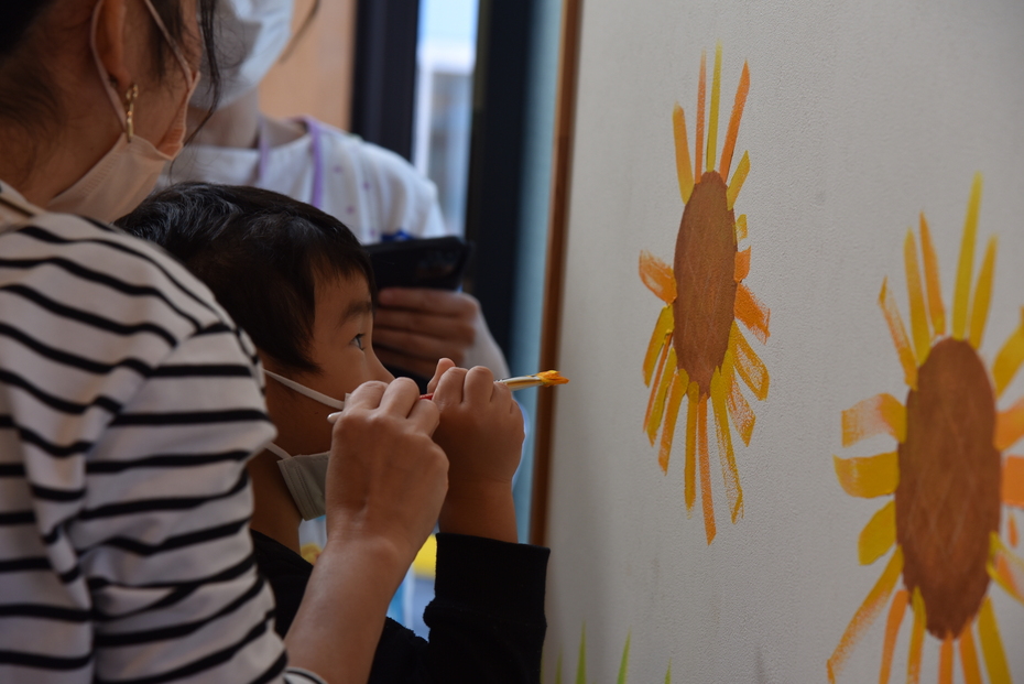 一人ひとり一枚ずつ花びらを描きました。