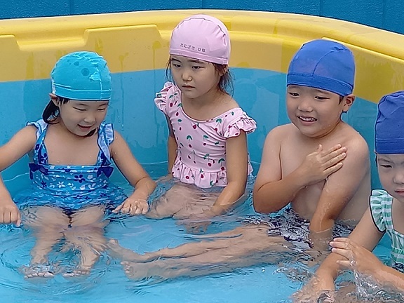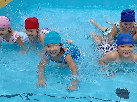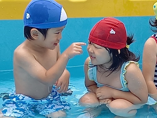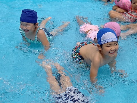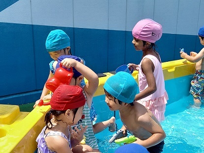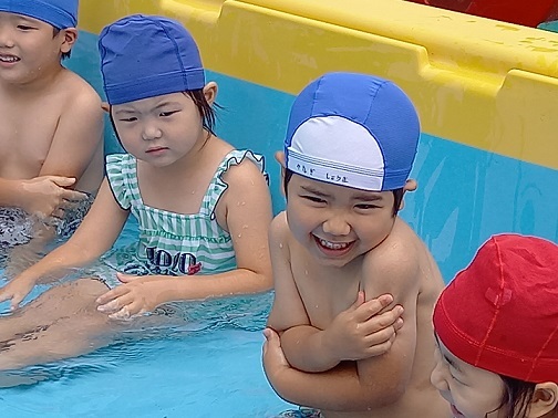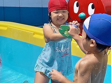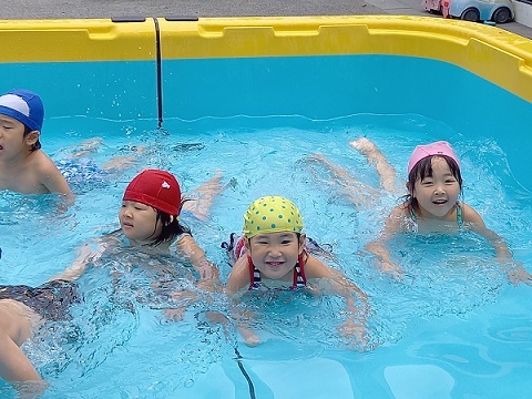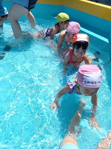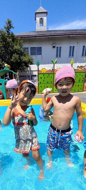 | 暑い日が続き、子ども達にとっては絶好のプール日和です。 子ども達もうれしそうです。 暑い中、沢山沢山遊びました。 | ||