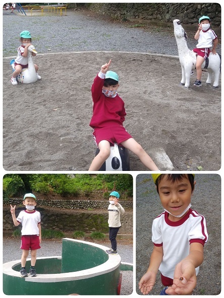 | 6月から猛暑が続いていますが、子ども達は元気いっぱい笑顔いっぱいです。 日々の保育の中でお友達や先生と様々なことに挑戦し、楽しんでいます。 日焼けした子供たちの顔は少したくましく見えます。 | ||