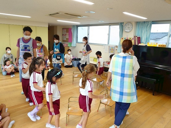 先生と一緒に椅子取りゲーム!! | ||