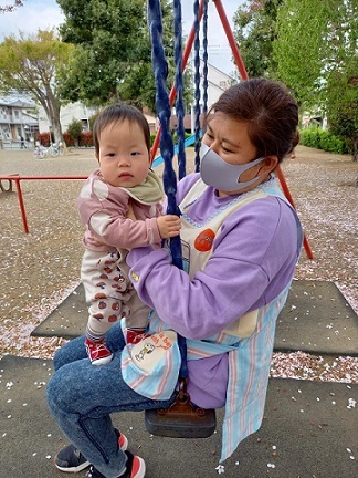 ブランコに先生と乗り、楽しく過ごせたお散歩でした。