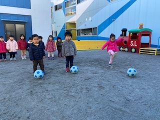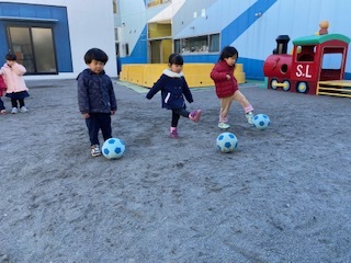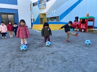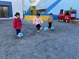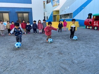 みんなでマラソンしたりサッカーしてたくさん動いて身体はポカポカ!